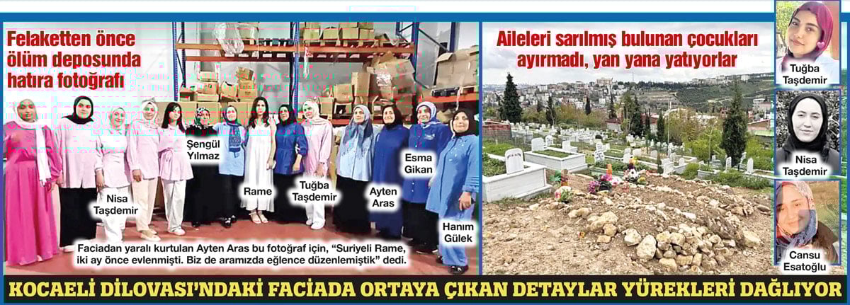 Dilovası’na tepeden bakan mezarlıkta üç genç kız yan yana yatıyor. 17 yaşındaki Tuğba Taşdemir, 15 yaşındaki Nisanur Taşdemir ile Cansu Esatoğlu birlikte uyuyor.