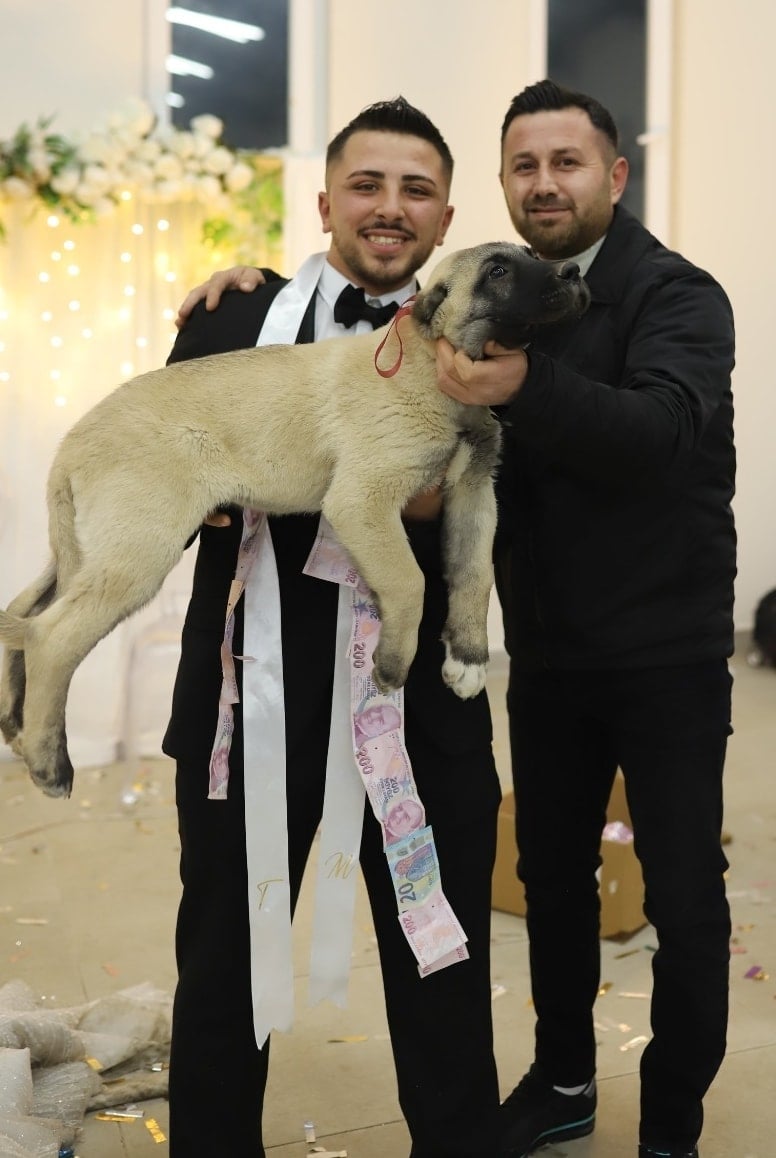 Düğüne katılan davetlilerden Süleyman Gültekin (35), damada yavru kangal köpeği hediye etti.