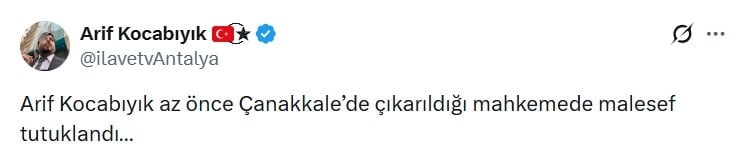 “Arif Kocabıyık az önce Çanakkale’de çıkarıldığı mahkemede malesef tutuklandı…”